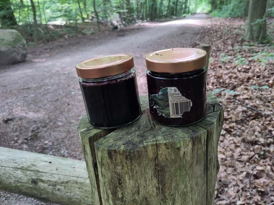 And we found jam in the forest. We’re not sure who left it here, but it was a very fascinating thing to find.