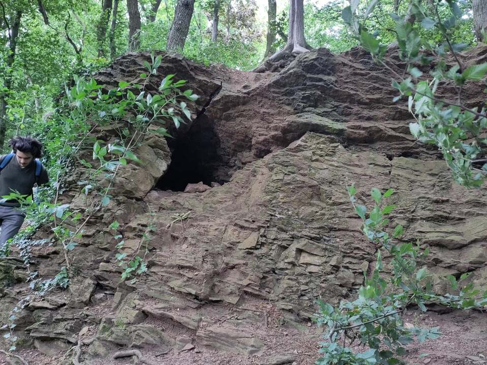 I exited at a small train station in a village near Porta Westfalica. I took a bus, initially in the wrong direction, and eventually arrived at the famous… well, forest? Yes, the bus stop was at a forest road crossing the main road, surrounded by trees. I followed the forest road and met an older man with a camera. We decided to head to the Externsteine together and, lo and behold, the famous rocks stood imposingly at the end of the road. The view from them was delightful. Westphalia is truly beautiful, a land of endless small hills covered with forests, villages, fields, and numerous wind farms.