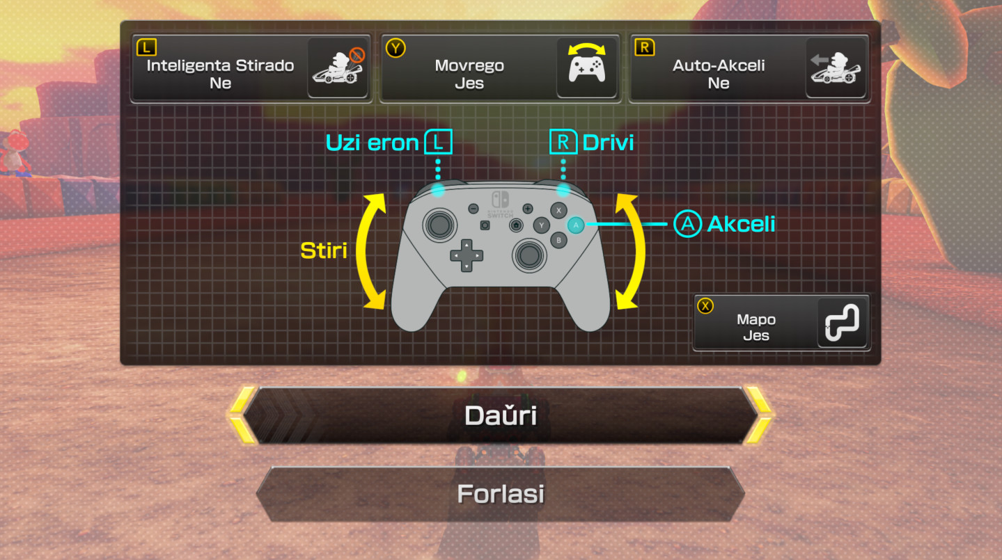 Lasta jaro mi ludis multe Mario Kart 8 Deluxe kun aliaj per Yuzu kaj decidis provi traduki la ludon esperanten. Esperanto estas mia plej ŝatata lingvo, ĉar ĝi belsonas kaj estas logika, do multe sencis fari tradukon de ĉi tiu videoludegon. La traduko de Mario Kart 8 Deluxe estas modifikaĵo, tio signifas, ke oni ŝanĝas la ecojn de ludo kaj ke oni povas ludi en esperanto nur per emuliloj kiel Yuzu aŭ kutima firmvaro kiel Atmosphere