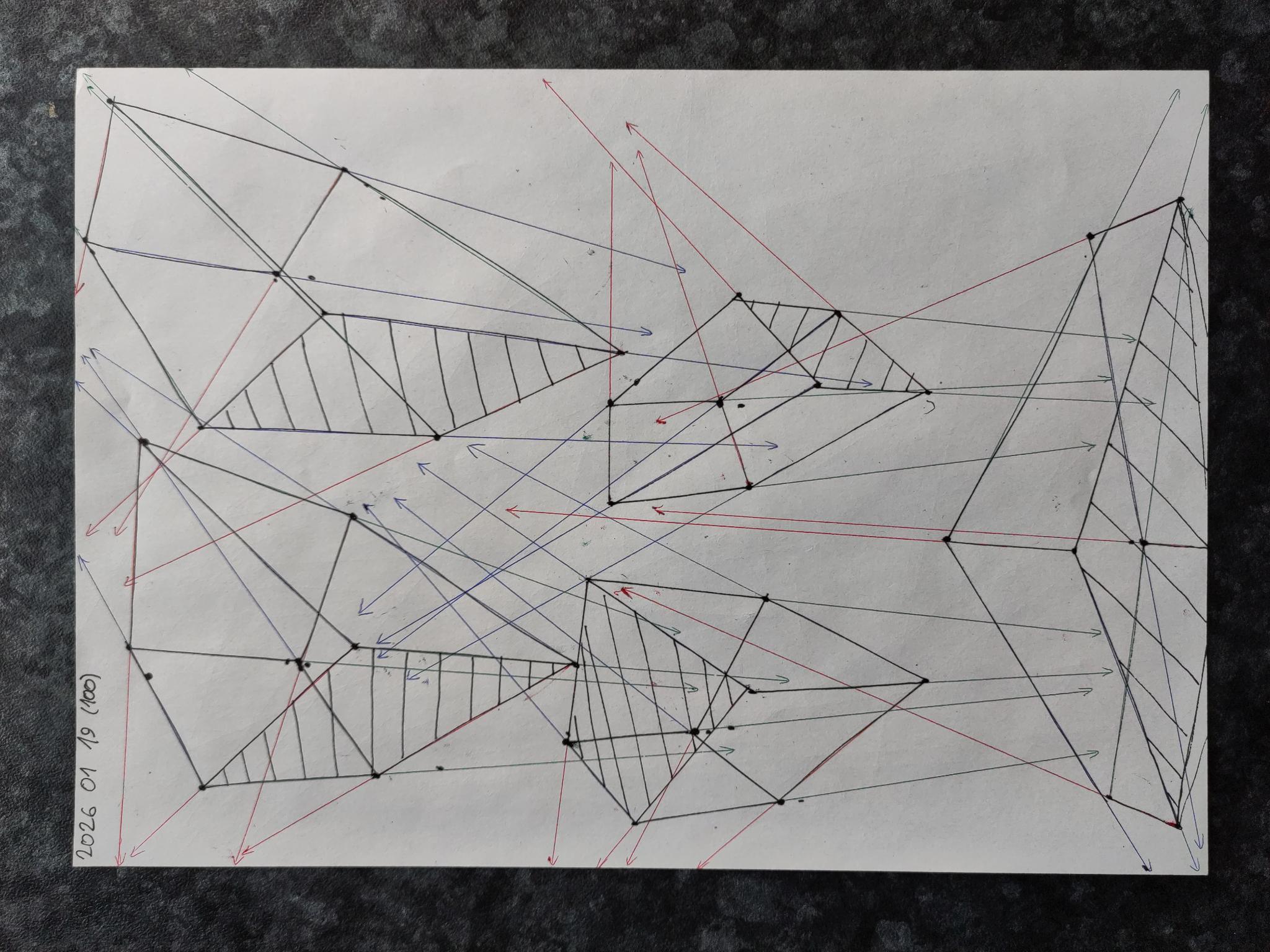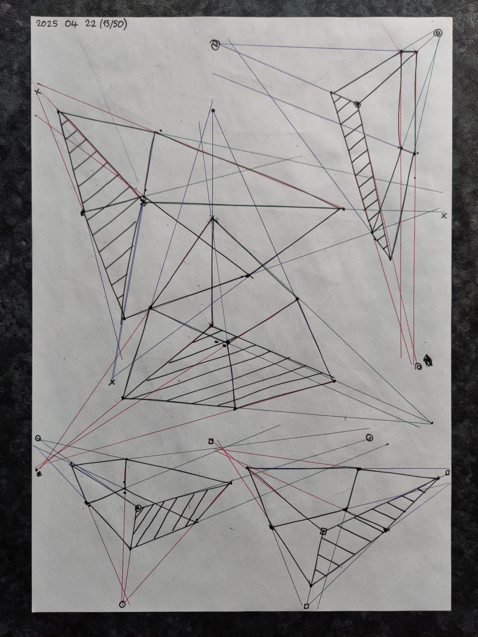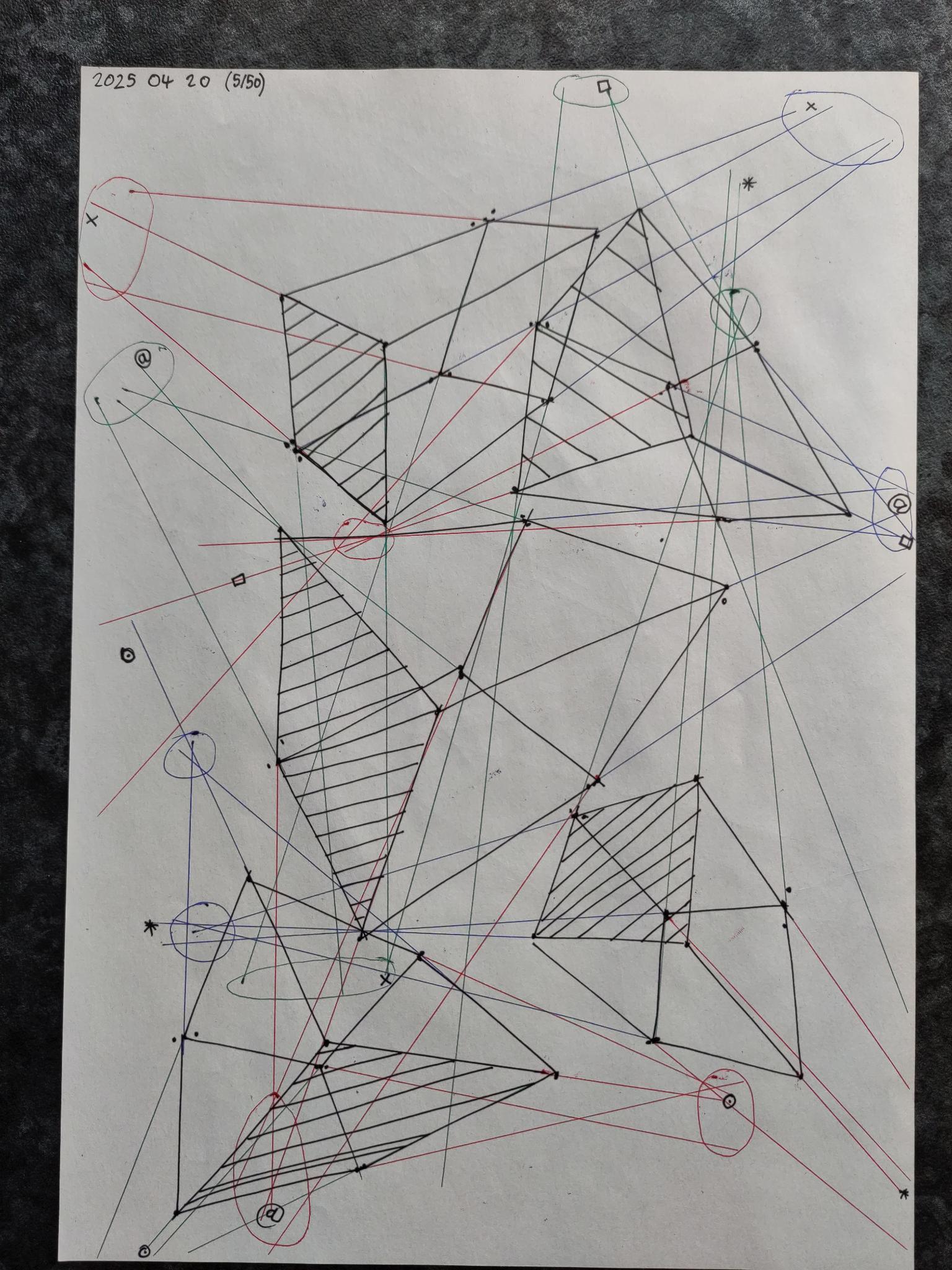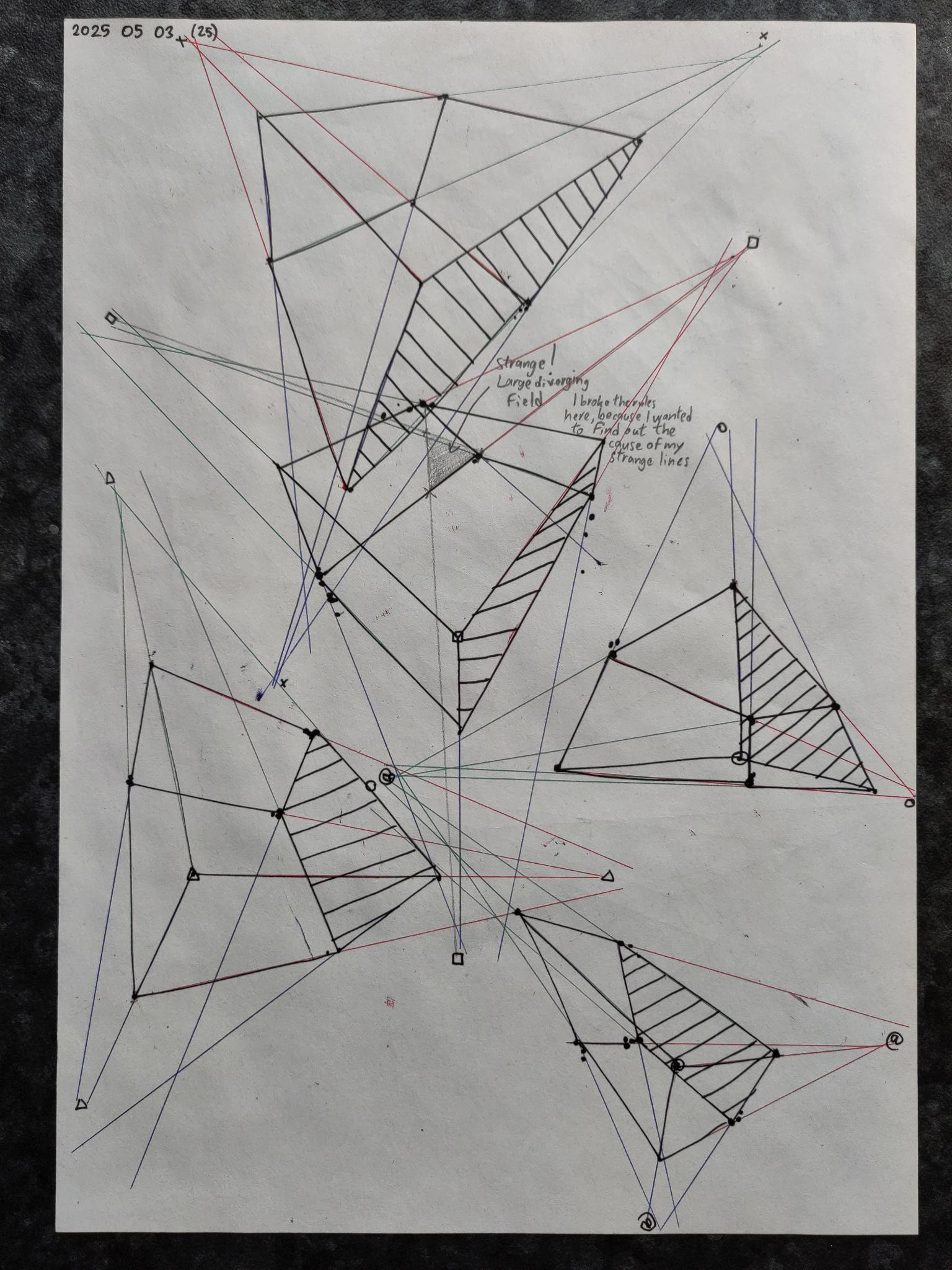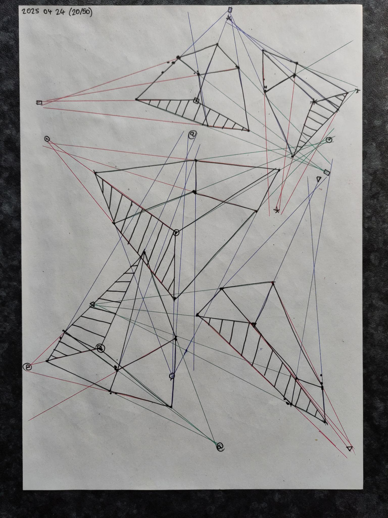Down below are the boxes, note that the first 50 boxes have more rapid convergence with their vanishing points on the same page. The last 50 boxes have their vanishing points off the page in the distance leading to a slower convergence.
