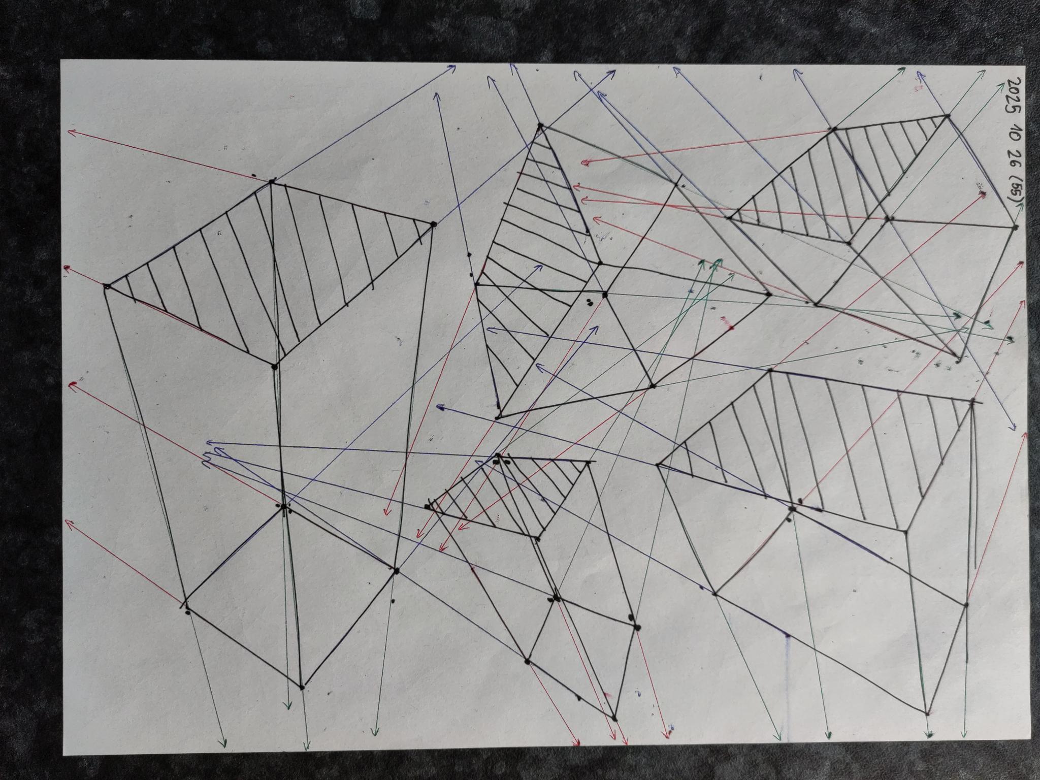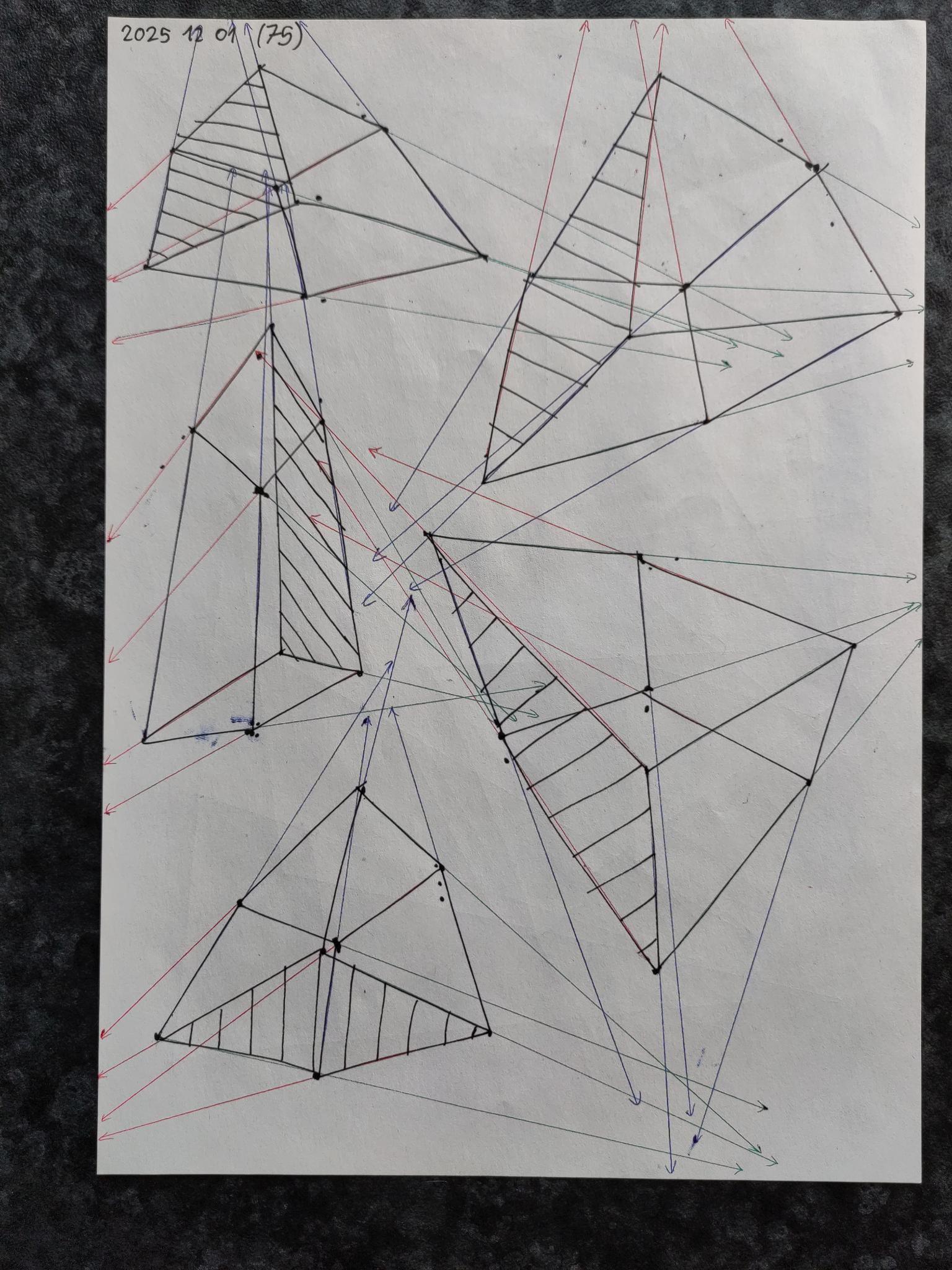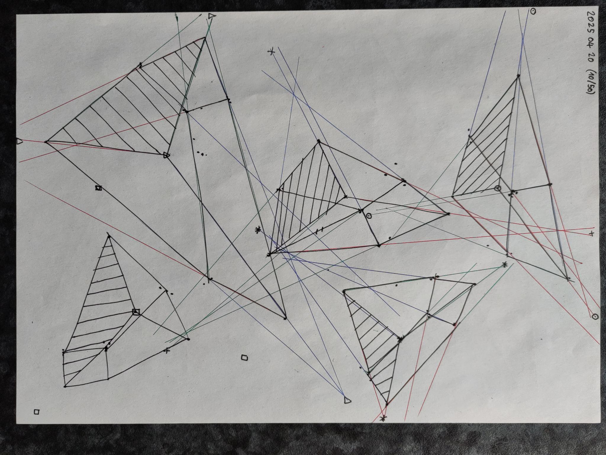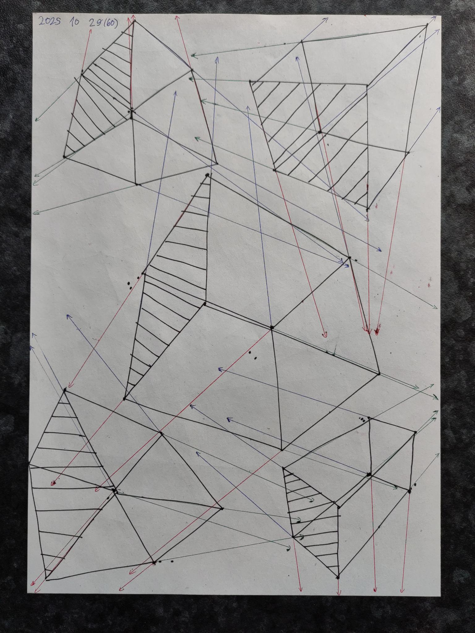 Down below are the boxes, note that the first 50 boxes have more rapid convergence with their vanishing points on the same page. The last 50 boxes have their vanishing points off the page in the distance leading to a slower convergence.