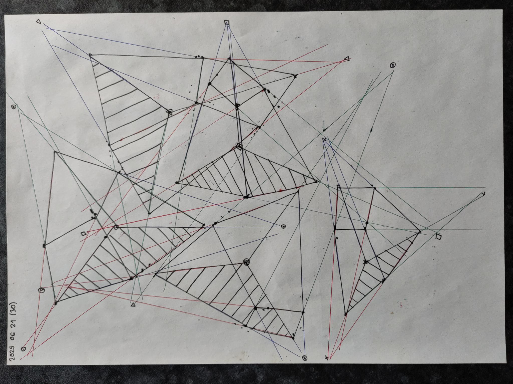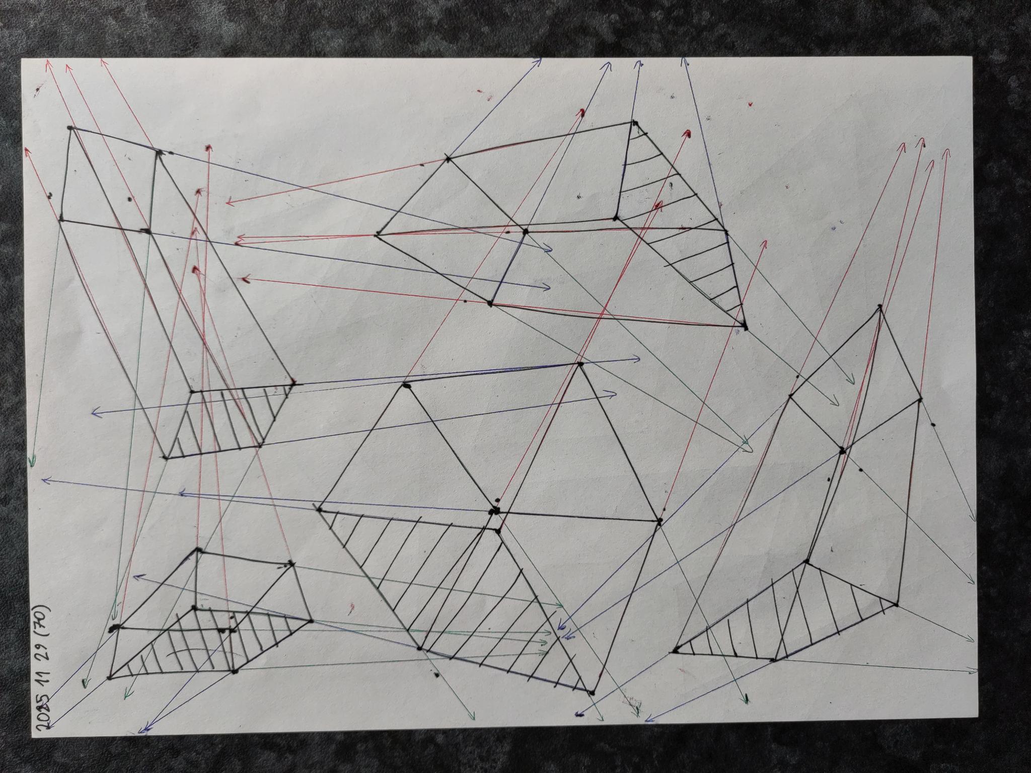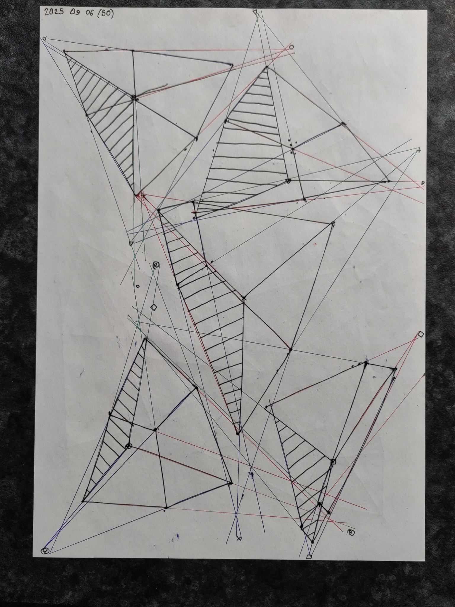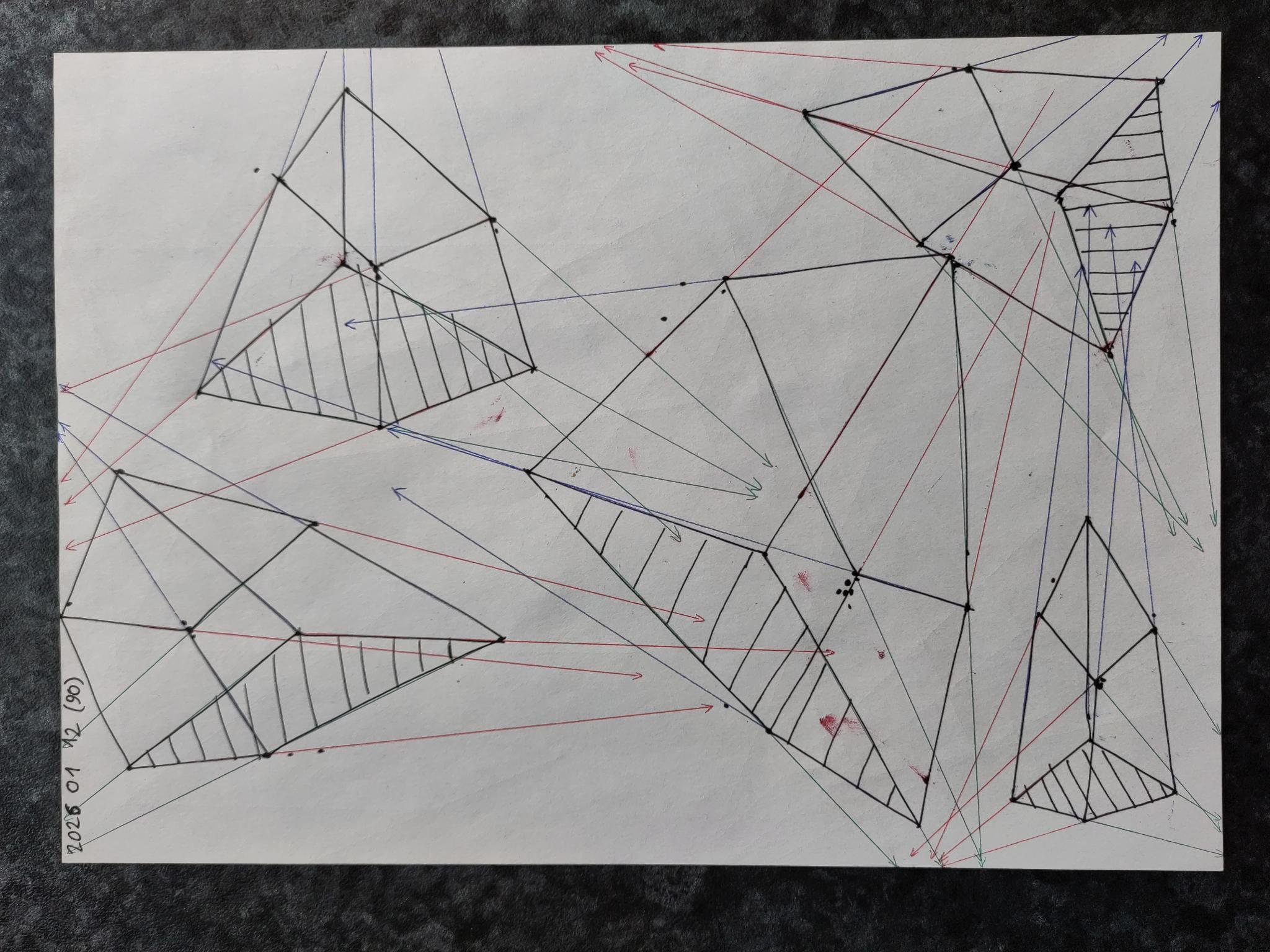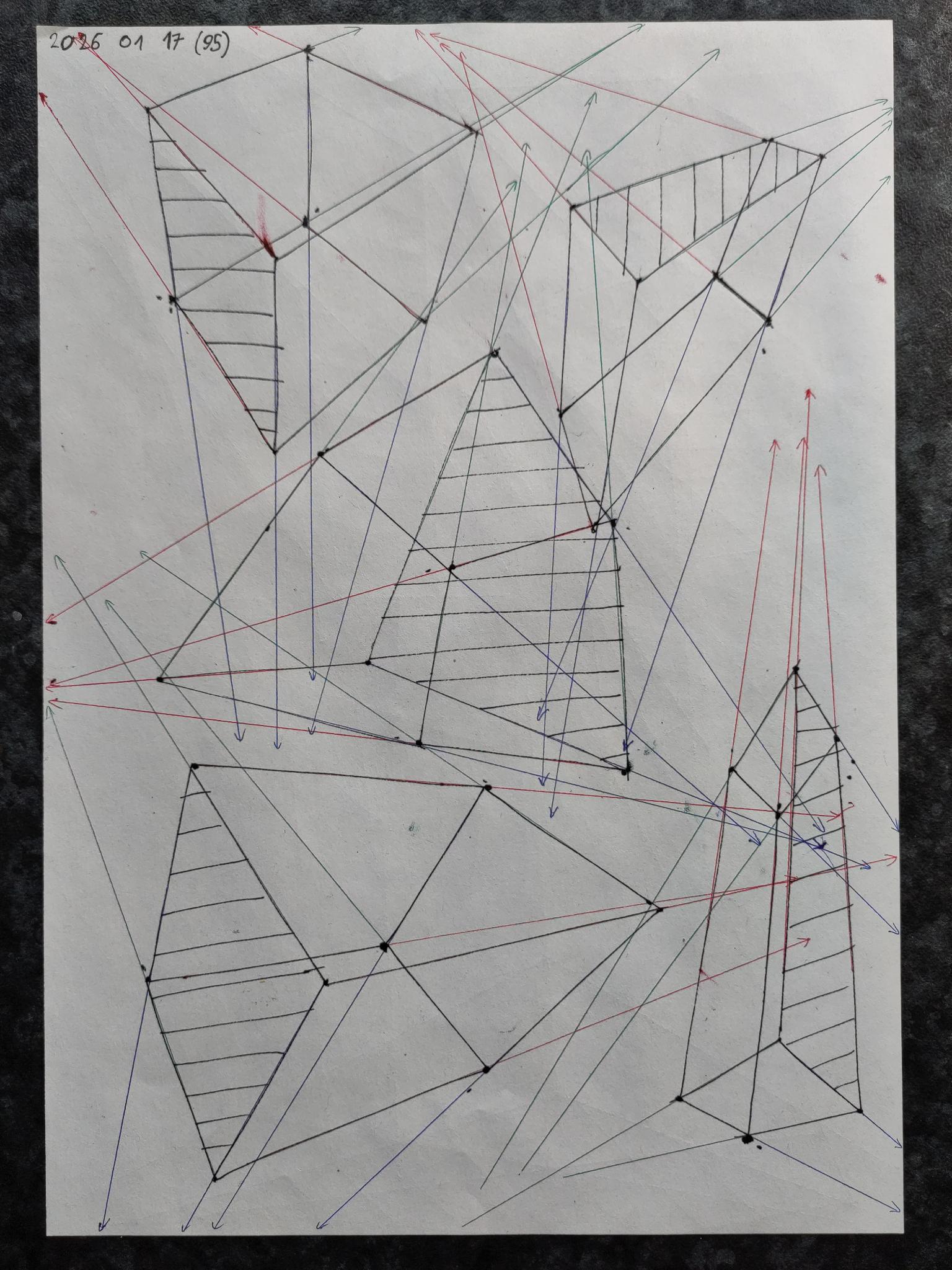 Down below are the boxes, note that the first 50 boxes have more rapid convergence with their vanishing points on the same page. The last 50 boxes have their vanishing points off the page in the distance leading to a slower convergence.