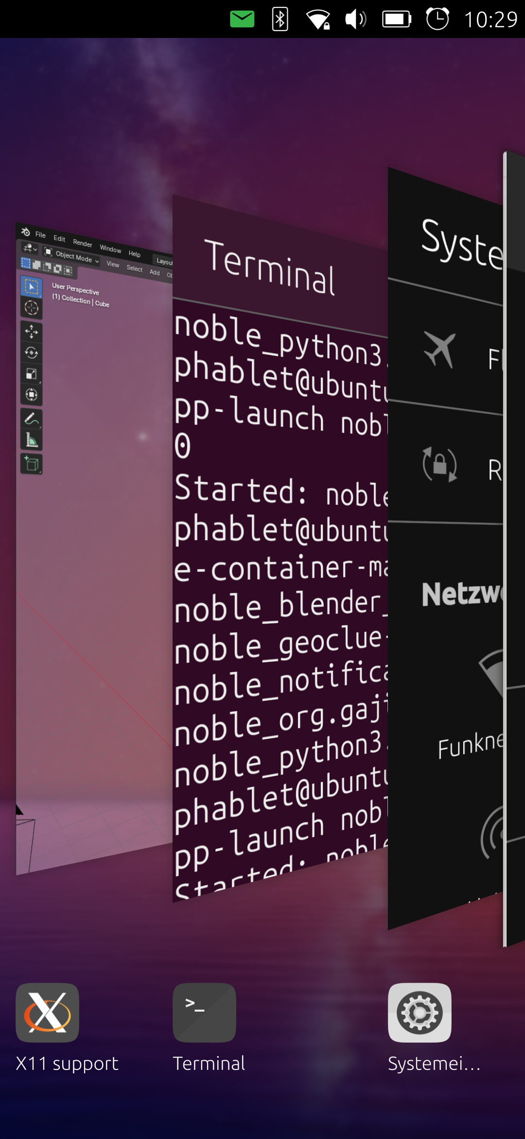 Installing Ubuntu Touch was quite simple with UBPorts installer. I was already willing to give Ubuntu Touch a try years ago, so I was very excited! The OS looks beautiful. The Suru theme is chique and reminds me a lot of my first Linux distro: Ubuntu 18.10 Cosmic Cuttlefish. It has a very unique UI called Lomiri. It’s very different, but also very polished. Calling (including VoLTE) works out of the box, the camera works well and the battery usage is small. It is possible to run Android apps via Waydroid and Debian and Snap packages via Libertine. The experience is really good, except of course for the small number of available apps. I’m especially missing Firefox or Chromium, which is why I had trouble with some captive portals, but thanks to Waydroid the issue is not as bad. Convergence is amazing! I managed to install Linux apps like Blender, Godot and Firefox, but remember these are desktop applications and their performance in Libertine made it very clear that the applications are running in a container. All in all, Ubuntu Touch is very polished and is usable as a basic daily driver!